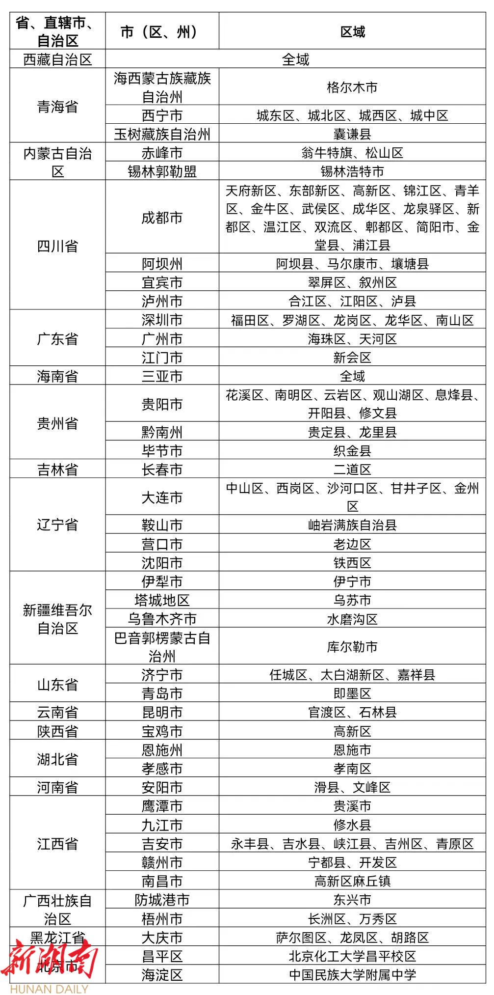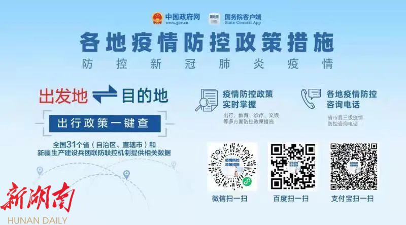 所有从外省入(返)郴人员至少提前1天报备向所在社区(村)、工作单位或居住宾馆酒店报备,同时通过登陆湖南居民健康卡中的“入湘报备”微信公众号,进行“入(返)湘人员报备登记”。尤其是近10天以来有西藏、贵州等地区(详见下表,后续根据疫情形势调整)旅居史人员,以及近10天有国内中高风险区所在区/县/市或有本土疫情发生区/县/市旅居史的入(返)郴人员,请立即向所在社区(村)、工作单位或居住宾馆酒店报告,配合落实核酸检测等相关防疫措施。对瞒报、谎报个人行程和健康状况的,将可能被依法追究法律责任。