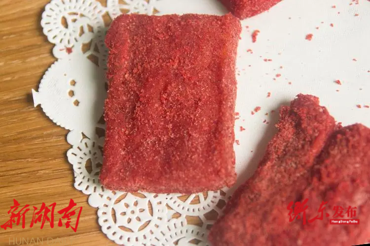 “我们杨桥麸子肉与其他地方的区别在于:一、食材要新鲜,肉以五花肉为最佳,也可根据自己的喜爱进行肥瘦配比。二、肉的腌制、调味以及红曲米粉、糯米粉、粘米粉的配比也是相当有讲究的,不同的配比,做出来的味道也不相同。三、在烘焙时,要特别注重火候,火不宜过大也不宜过小,时间要掌握好,一定不能把肉熏得太老太柴。这样制作出来的麸子肉,味道才会更美更香,肥而不腻,更加受大众的喜爱。”麸子肉制作人刘岳凤说。