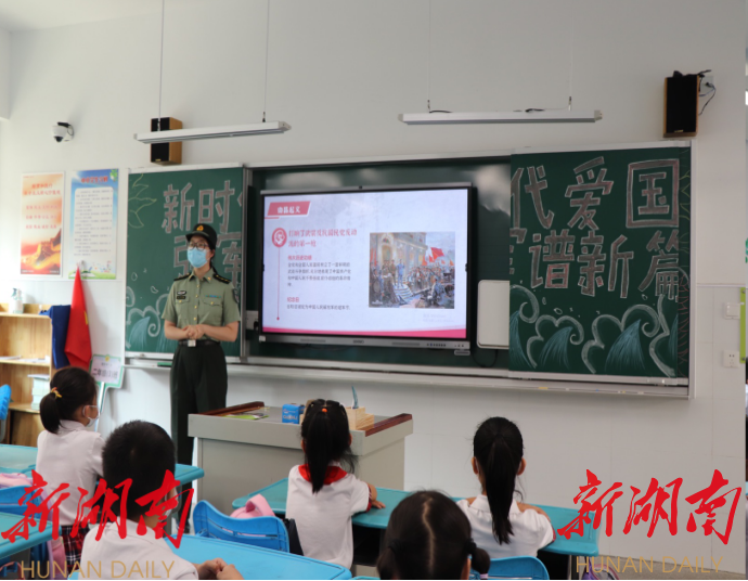 接着,一、二年级观看精选经典红色电影,三、四年级由教官进入班级进行国防教育讲座。