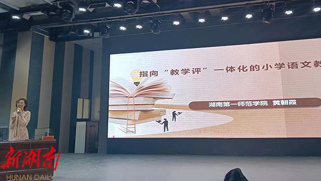 教育专家黄朝霞老师做了《指向“教学评”一体化的小学语文课堂教学》的讲座。黄老师以新版语文课标“学业质量”入手,引入案例,提出教学建议“教—学—评”一体化小学语文教学,实则是保持理念:“标(目标)—评(量规)—学(过程)”的一致性。黄老师还对课堂教学“察—研—判”的方法及“思—做—变”的教学行为进行了分享,方法可行,思维新颖,让人跃跃欲试。