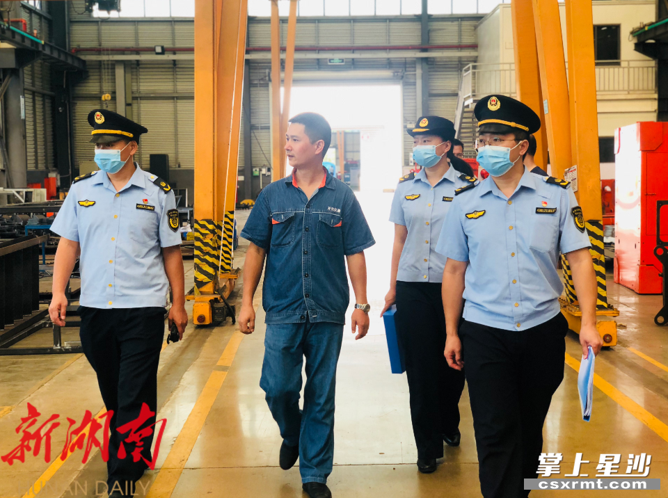 在长沙县长龙街道的某企业园区内,记者跟随执法队员一行人走进企业开展帮扶督查行动。