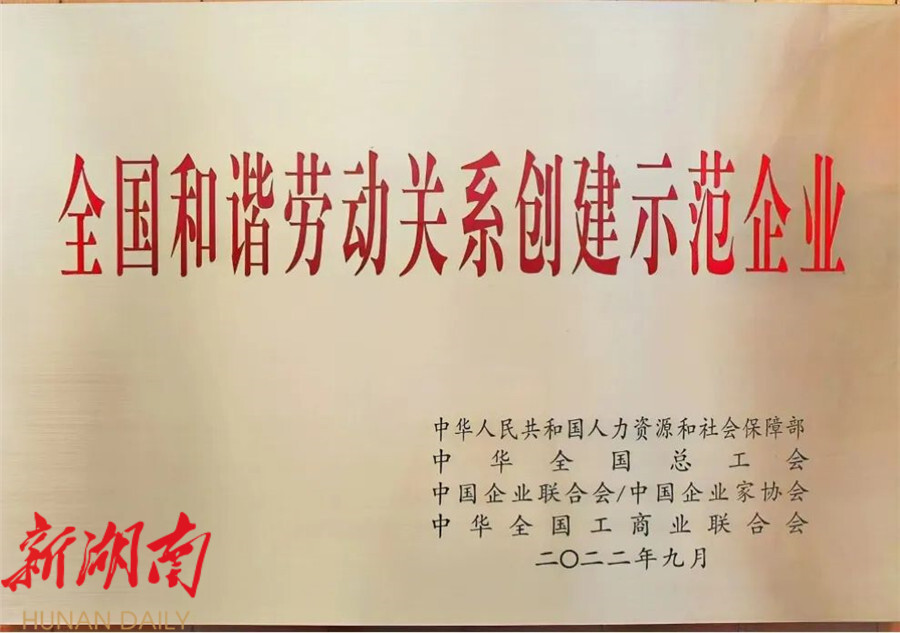 新桂阳9月29日讯(记者 李维坤 曹诗灏)日前,人力资源社会保障部、中华全国总工会、中国企业联合会/中国企业家协会、中华全国工商业联合会联合印发《关于命名全国和谐劳动关系创建示范企业与工业园区的决定》,我县民营企业湖南帝京环保新材料有限公司获评“全国和谐劳动关系创建示范企业”,成为了郴州市唯一一家首次在此项评选中获国家级荣誉的企业。