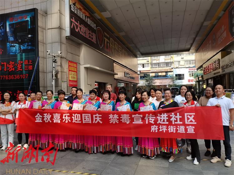 武陵区府坪街道开展“金秋喜乐迎国庆,禁毒宣传进社区”活动