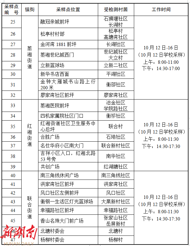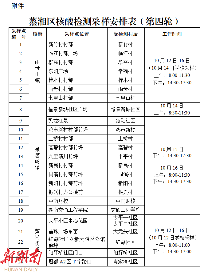 附件:蒸湘区核酸检测采样安排表(第四轮)