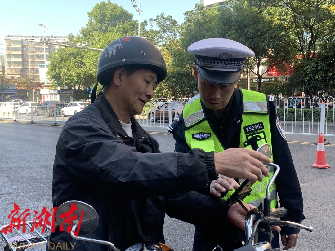 新桂阳10月18日讯(记者 谭明艳 )连日来,我县持续推进“戴帽工程”专项整治行动,严查辖区内摩托车、电动车无牌无证、违法载人、非法改装等违法行为,城区摩托车、电动车“戴帽”效果明显,驾驶人“戴帽”意识明显增强。但在农村地区,偶尔还有侥幸心理的“摩电”驾驶人。