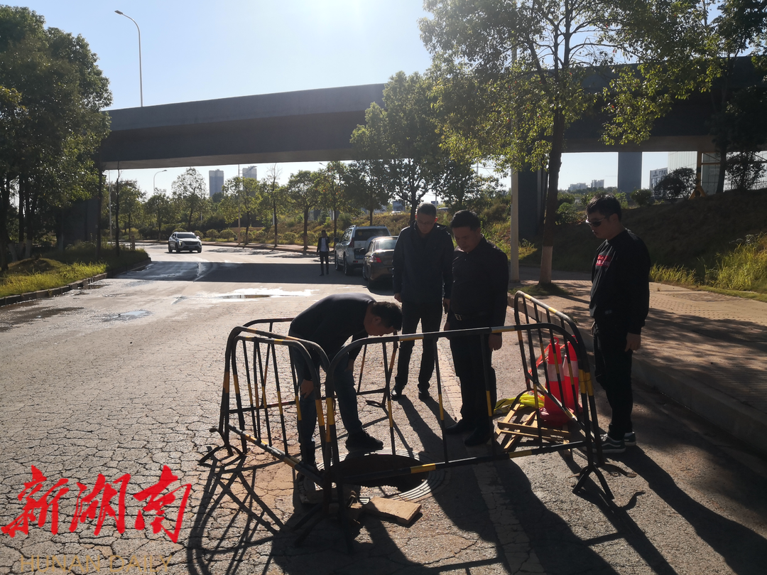 "安全帽呢?这样下井不安全!""怎么只有围挡?警示在哪?"…在对一线施工现场进行突击安全检查时, 天元区市政维 护中心 主任 李 艳国 指出存在的问题并责令现场整改。