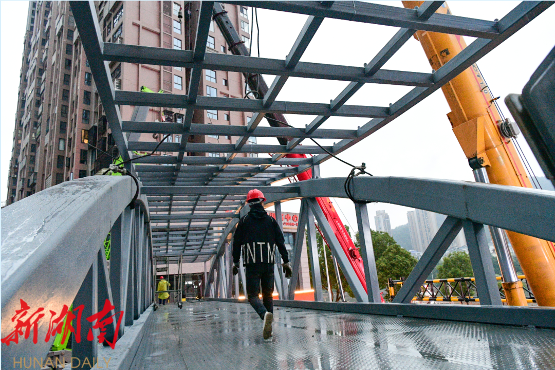 曾鑫此前做过不少钢结构厂房的建设,这是他第一次参与人行天桥项目,所以他在依照规划图纸建设的同时,一边查看现场实际环境进行微调一边学习,“以便日后还有机会在浏阳建设更多的人行天桥。”