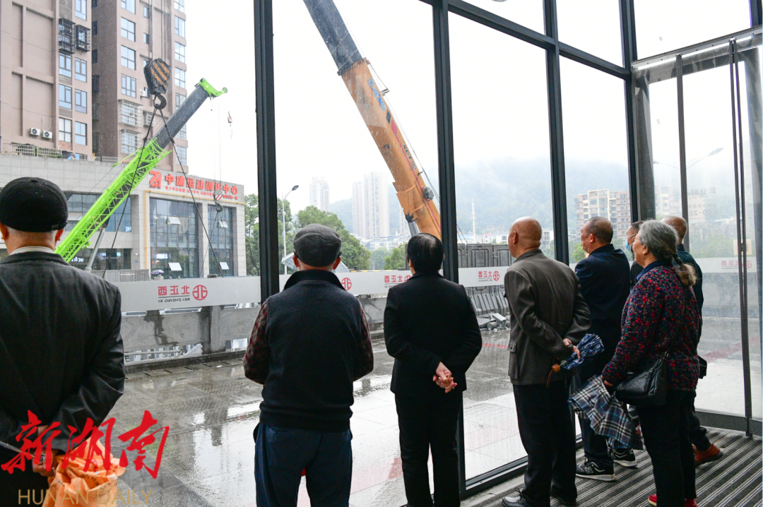 当天,在吊装现场,尽管天空不断有小雨飘下,但附近仍聚集了不少围观的市民。随着吊装结束,不少市民甚至迫不及待想走上天桥感受一番,被施工人员及时制止。“现在施工还没有完成,请大家保持安全距离,待可以通行后,我们会第一时间告诉大家!”虽然听到工人们的呼喊,可还是有不少人站在原地,看着工人们继续施工,久久不愿离去。