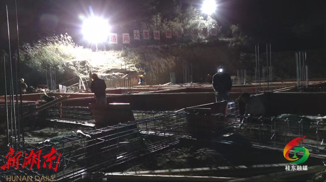 晚上10时许,自然科普馆项目施工现场灯火通明,机械轰鸣声不断,混凝土泵车穿梭其中,施工人员认真检查各处钢筋与模板安装是否牢固,为浇灌混凝土做好准备工作。