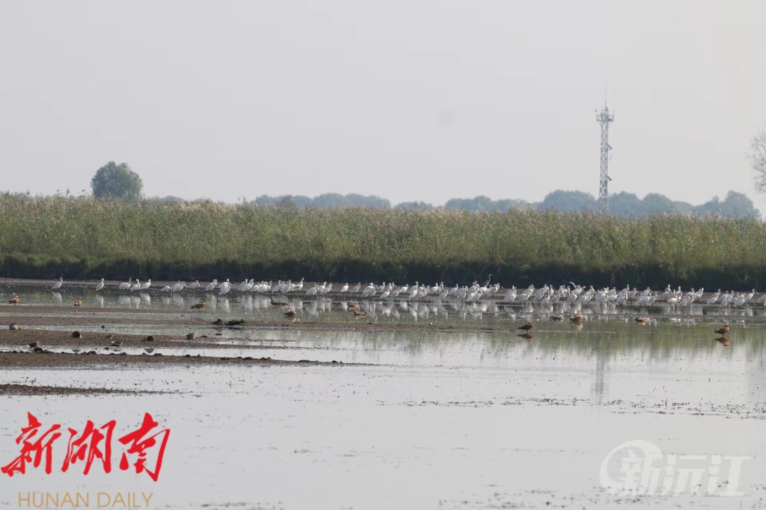 新沅江客户端11月8日讯 (通讯员 王奇)芦苇依依,飞鸟翩翩,云绕雾缭,似腾湖而起的仙洲 …… 站在漉湖五门闸往前看,曾经的湖泊已变绿洲,水位一再降低,在今年严重干旱的情况下,各界人士对湿地生态资源安全深感担忧。旱情发生后,关注南洞庭湖的民众发现,在南洞庭湖还有这样几个典型湿地区域已成珍稀候鸟避灾栖息的天堂。漉湖蒸钵湖、三联洲、明朗山等区域,经过近几年保护修复后,已成为异常旱情下保障区域生态需水及候鸟、野生动物、鱼类资源生态避灾的重要栖息地。据漉湖站巡护人员介绍,候鸟迁徙来临前期,10月份已观测记录到蒸钵湖与三联洲区域有鸟类2万余只,监测发现国家一级保护动物有鸟中“大熊猫”之称的青头潜鸭(全球不到700只)18只在此留下来栖息繁衍,比去年增加近一倍。