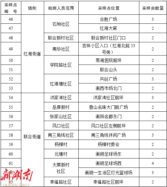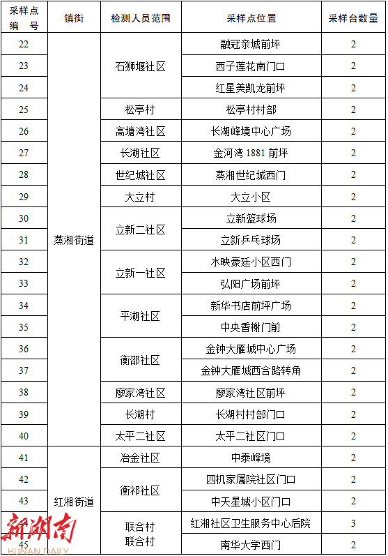 附件:蒸湘区城区新一轮区域全员核酸检测采样安排表