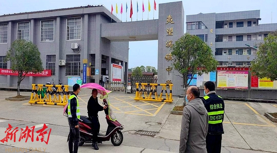 湖南日报·新湖南客户端11月17日讯(通讯员 唐高风 ) 为切实消除校园及周边各类安全隐患,深入推进平安校园建设,桃源县夷望溪人民政府联合镇综合执法大队、镇派出所等在夷望溪中学开展校园周边环境整治行动,依法对学校周边的流动摊点、餐饮店、小卖部、乱停乱放车辆等进行整治。