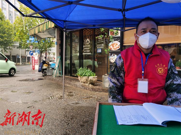 退役军人李明起主动带领10名人员前往府坪街道百街口社区退役军人服务站报到,他们化身为疫情防控的“摸排员”“守护员”和“宣讲员”,穿梭在基层一线。“请大家戴好口罩,做好自我防护。请大家排好队,保持安全距离,检测完毕迅速离开。”11月16日上午,在百街口社区居民区检测点,退役军人志愿者李明起和他的队员们现场引导前来核酸检测采样的居民,不厌其烦地宣传防疫政策,热情服务行动不便人员。