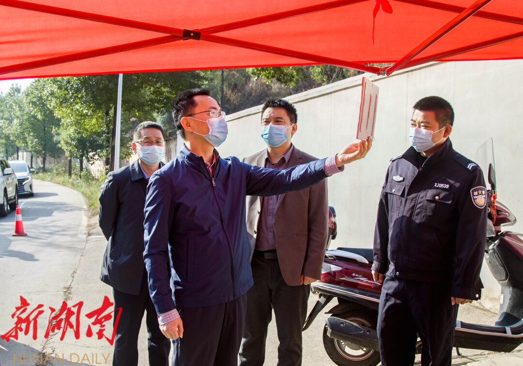 湖南日报·新湖南客户端11月20日讯(张铭齐 彭伟桐 ) 11月20日上午,常德市人民政府副市长、桃源县委书记庞波采取“四不两直”方式,深入一线,对乡镇疫情防控服务点和居家隔离点进行暗访督查。他强调,当前要把内防扩散作为现阶段防控工作的重中之重。要牢固树立全县“一盘棋”思想,认识上再提高、措施上再夯实、力量上再加强、管控上再严格,以更高标准更严要求筑牢疫情防控坚固防线。