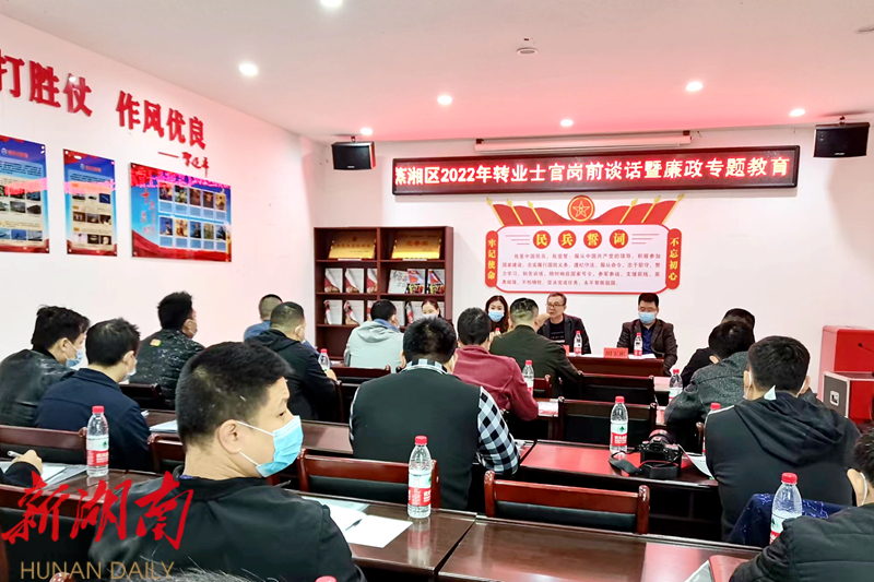 为帮助退役士兵迈好工作转轨、事业转型、人生转身的关键一步,11月21日,蒸湘区退役军人事务局组织开展2022年度退役士兵岗前培训暨廉政教育专题活动。区领导邓三德出席会议并讲话。