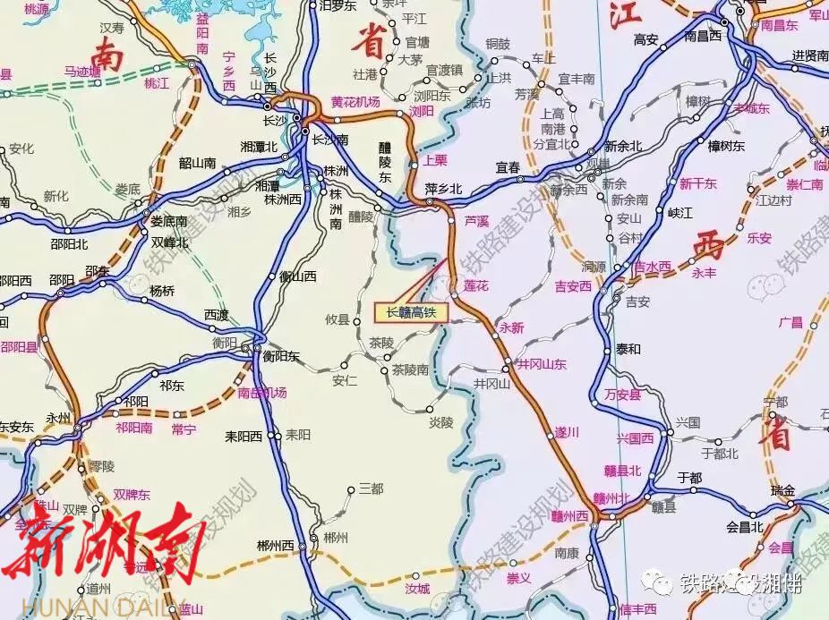 按规划,长赣高铁还将在长沙设云贵厦联络线、西南联络线,经高铁长沙南站连通沪昆高铁、京广高铁;在萍乡设渝长沪联络线,通过沪昆高铁沟通上海方向;在赣州设连接线,沟通长沙至深圳方向,进一步增强沿线地区与粤港澳大湾区、海西经济区等沿海地区的经济联系和人员往来。