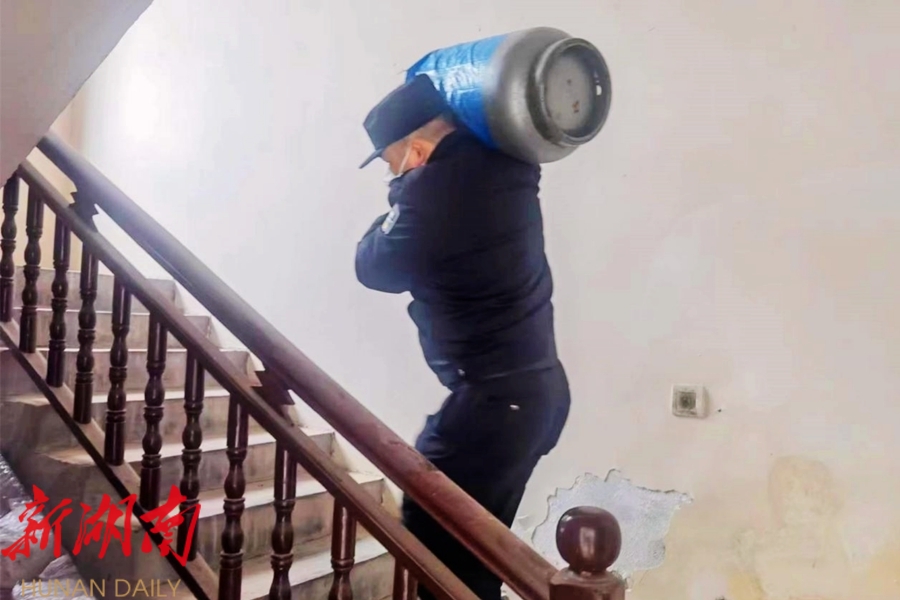 几个小时后,新罐的液化气如约而来,张力步行100米,登梯二十余阶送到居民家门口。居民连声道谢,张力感觉天气寒冷,但心里却暖和。