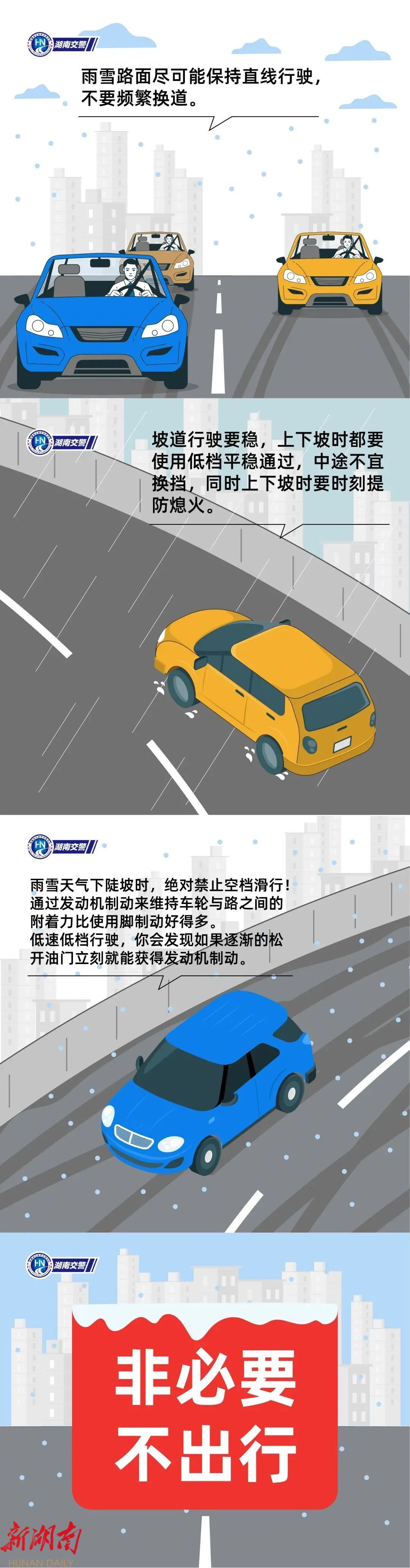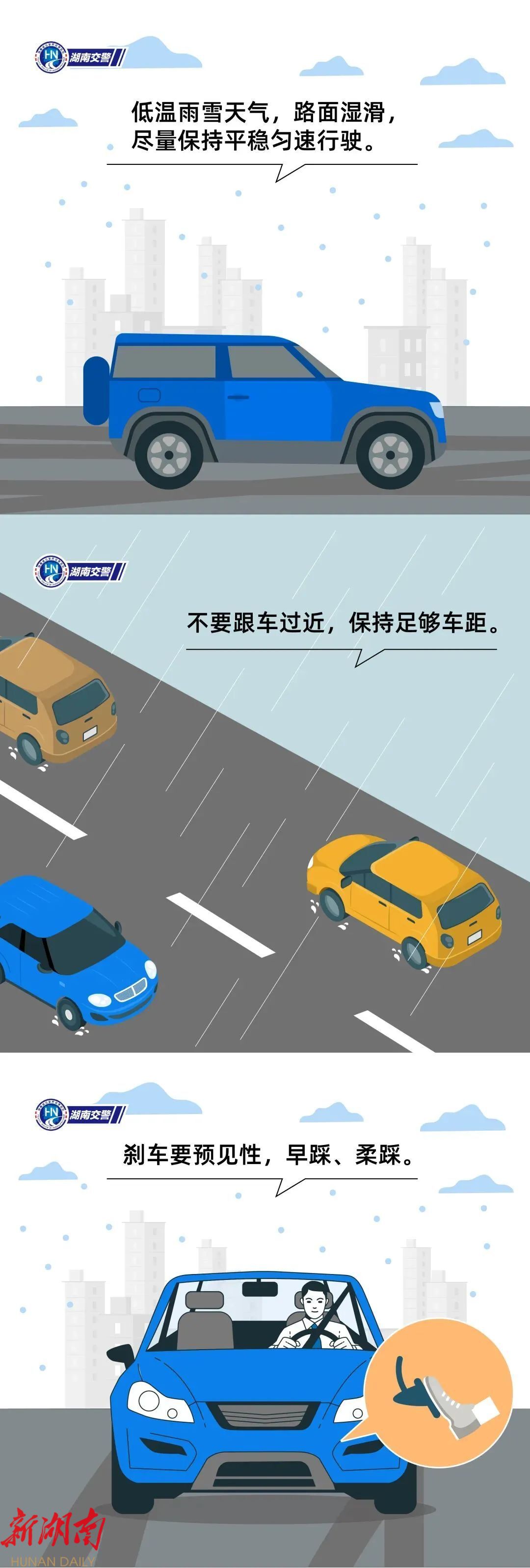 近期市内持续低温阴雨(雪)天气,将对道路交通安全产生不利影响。驾车出行前请提前了解路况信息,同时,请牢记以下安全提醒: