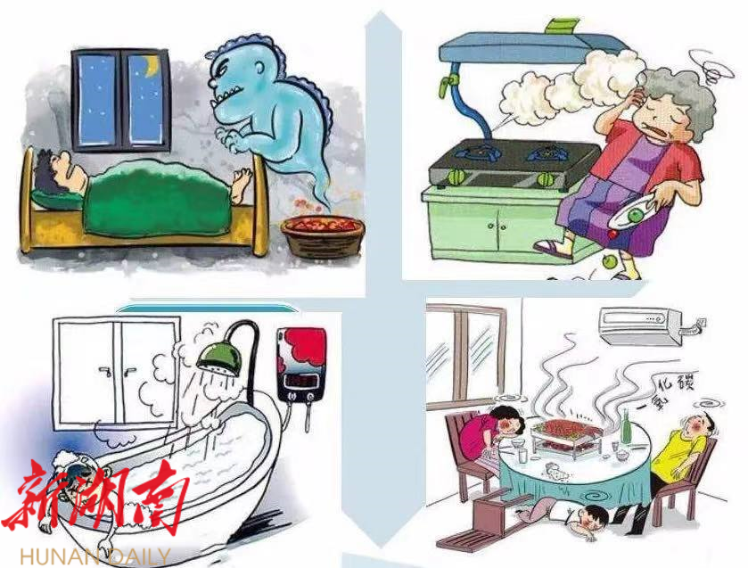 1.冬天用煤炉取暖,门窗紧闭、排烟不良。