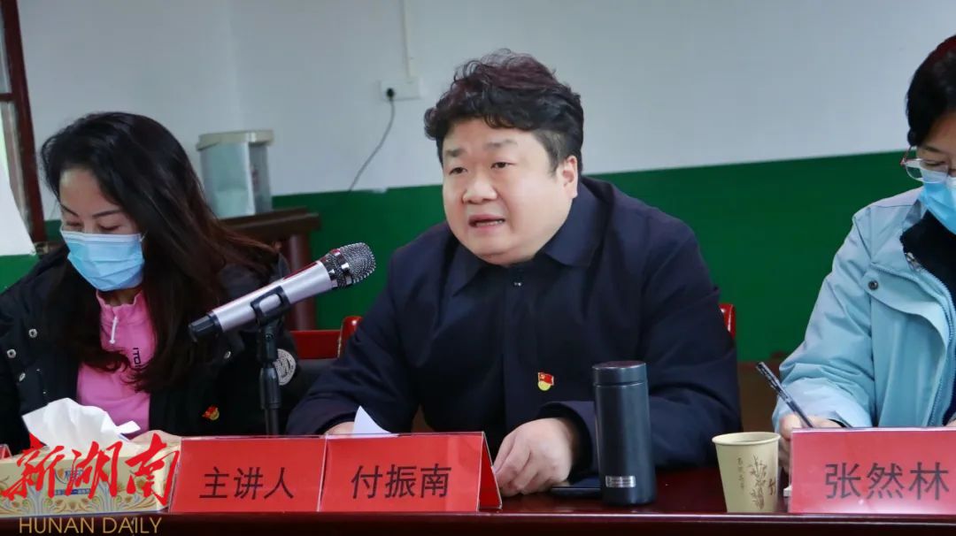 与此同时,在沙头镇文兴村,中青一班第一党小组学员、湖南发展集团土地经营管理有限公司党支部书记、执行董事、总经理帅富成以“高举旗帜 凝心聚力 奋进新征程”为主题,从新时代十年的伟大变革及里程碑意义、开辟马克思主义中国化时代化新境界、新时代新征程中国共产党的使命任务等六方面展开宣讲。
