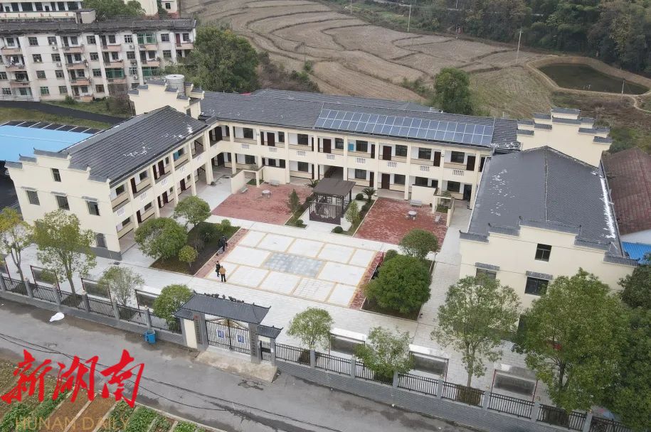 杨林坳敬老院新建于2017年,占地面积3650.88㎡,位于杨林坳卫生院、杨林坳小学之间,周边交通便利。改造前该院有60张床位,功能分区混杂,树木种植分散,无场地提供进行老年人观影、休闲、健身使用。改造后的敬老院采用三合院布局,在原有基础上增加了20张床位,并充分利用场地,在南面让出大广场供临时停车和观影使用,大广场铺地为“寿”字的美好寓意四周设置文化景墙,区域内划分了休闲区和健身区。该项目总投入资金310万元,目前已全面竣工并投入使用。