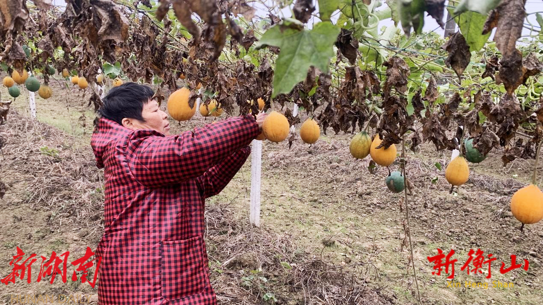 衡山县融媒体中心12月6日讯【记者:赵诗 蒋鹏 通讯员:何振宇】 瓜蒌黄,采摘忙。12月6日一大早,衡山县白果镇岳北村的瓜蒌基地喜迎丰收,田间地头满是欢声笑语,当地村民们正忙着采摘瓜蒌,金黄色瓜蒌给农民带来增收喜悦。