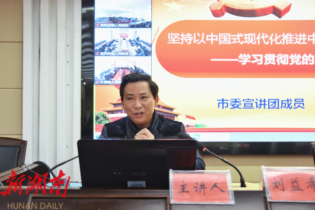 会上,刘益希以《坚持中国式现代化推进中华民族伟大复兴——学习贯彻党的二十大精神》为题展开宣讲,围绕“党的二十大的主题及主要成果、新时代5年巨大成就与10年伟大变革、开辟马克思主义中国化时代化新境界、中国式现代化、全面建设社会主义现代化国家目标任务、坚持党的全面领导和全面从严治党、用奋斗应对风险挑战创造新的伟业”七个方面,对党的二十大提出的新思想新论断、作出的新部署新要求,进行了全面、系统、深刻的阐释解读。