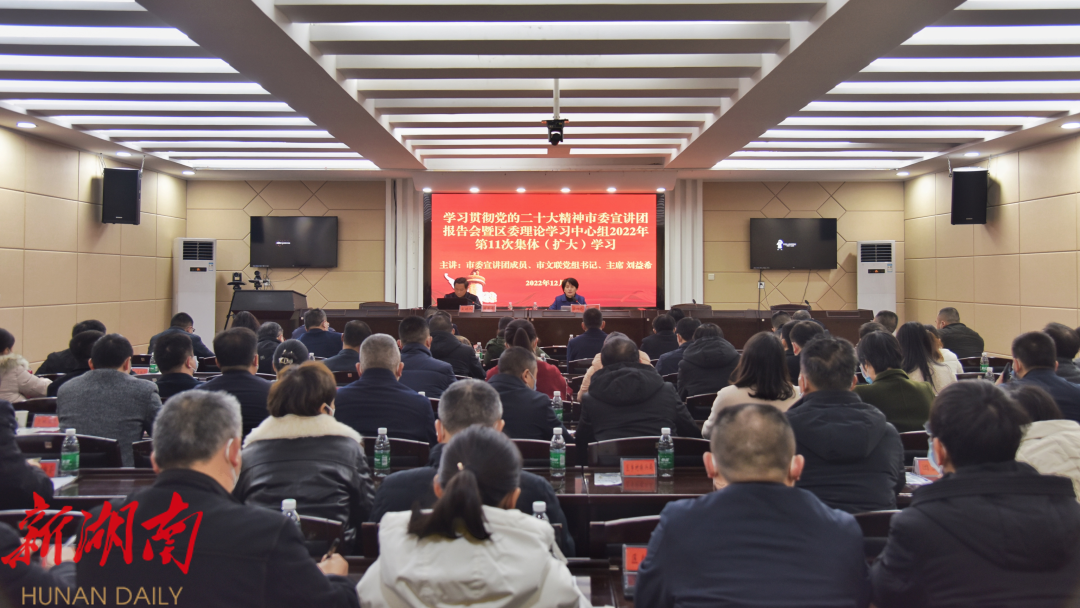12月7日,资阳区学习贯彻党的二十大精神市委宣讲团报告会暨区委理论学习中心组2022年第11次集体学习(扩大)会议举行。市委宣讲团成员、市文联党组书记、主席刘益希作宣讲报告,区委副书记、区长黄瑛主持会议。区委理论学习中心组成员,区直、驻区单位主要负责人参加会议,各乡镇、街道、经开区在分会场参加视频会议。