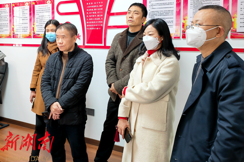 12月9日,蒸湘区人大常委会主任彭东阳、副主任黄亚君一行到蒸湘街道调研人大代表联络站建设,并了解“码上找代表”试点工作开展情况。