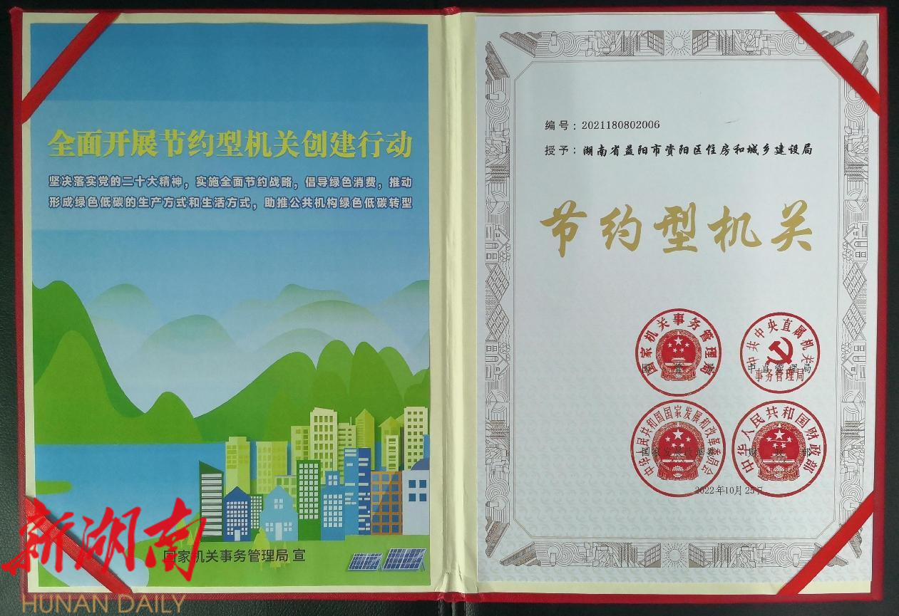 恭喜!资阳区住建局被授予“节约型机关”荣誉称号