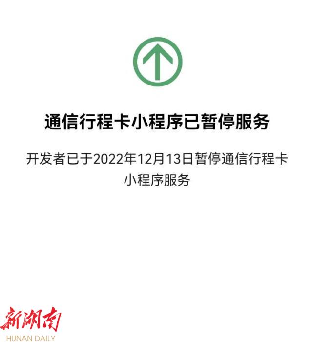 中新网12月13日电 12月13日零时,“通信行程卡”服务正式下线。“通信行程卡”小程序显示,开发者已于2022年12月13日暂停服务。