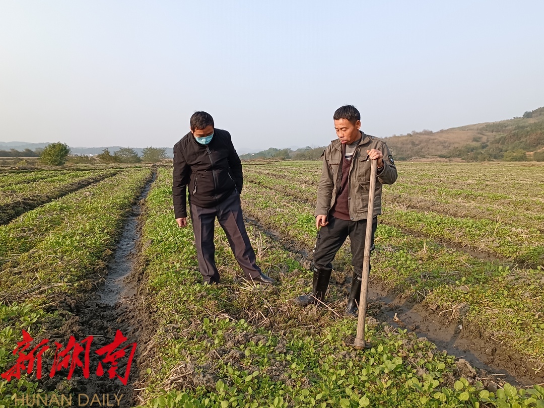 “下一步 ,我们就是要抓好这个油菜的清沟排水工作, 油菜是属于旱土作物, 一定要把清沟排水搞好, 寒冬腊月就到了, 我们要补施腊肥 ,要增加它的抗寒能力。施腊肥的话 ,一般就一亩田四五百斤土杂肥, 苗子差的话我们选择就是下雨天补施十来斤尿素一亩田(来)提苗, 争取把这个油菜长势攻上去。”县农业农村局农艺师陈石柱说。