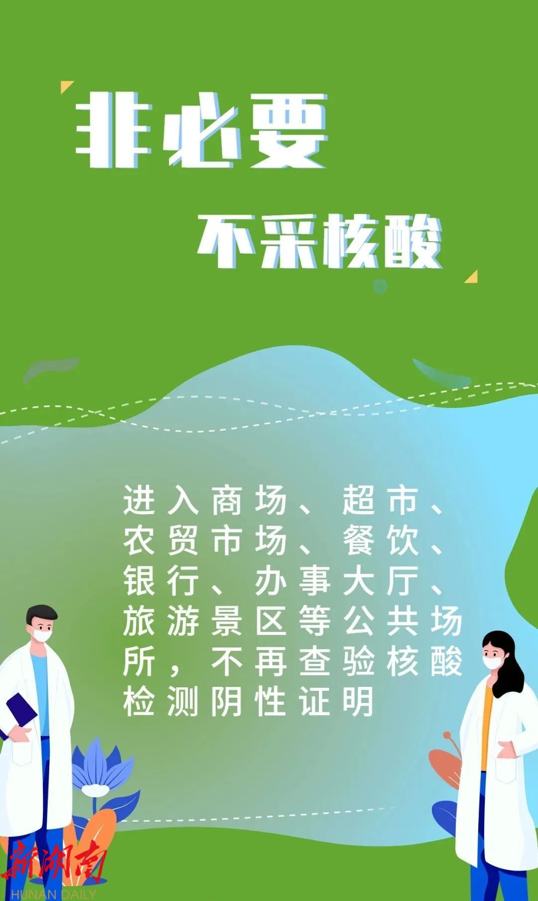 进入商场、超市、农贸市场、餐饮、旅游景区等公共场所不再查验核酸检测阴性证明。