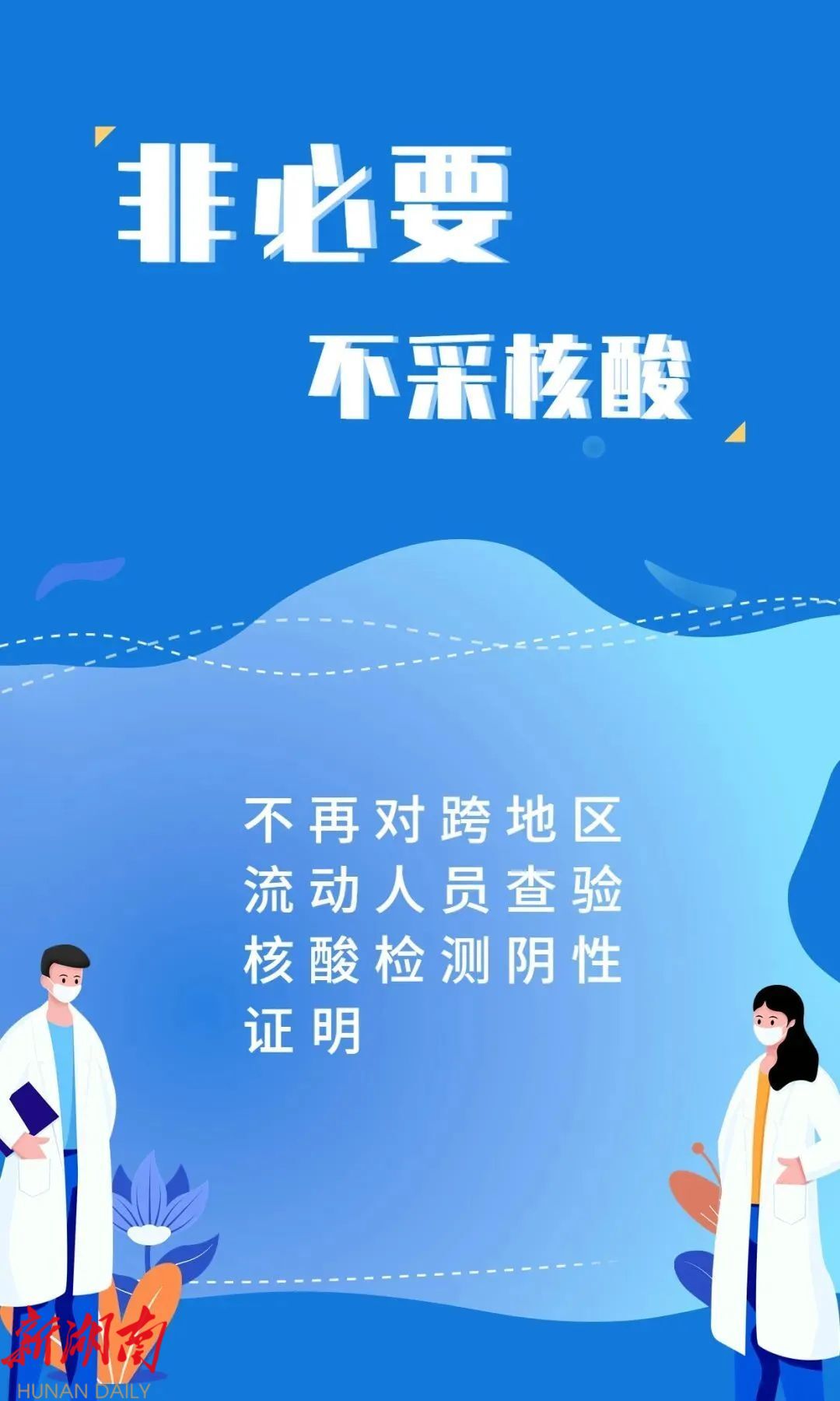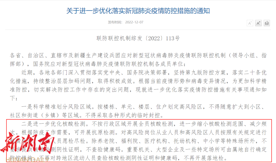 不再对跨地区流动人员查验核酸检测阴性证明和健康码,不再开展落地检。