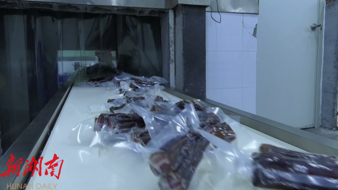 新湖南客户端12月16日讯(记者 田园 邬腾异)“湘西腊肉”是餐桌上的一道美食。冬季已至,湘西腊肉、腊香肠等年货将迎来销售旺季,12月16日,记者来到湘西土家族苗族自治州古丈县产业开发区的湖南鑫科牧业有限责任公司,公司正在加大马力生产,积极备战年货订单。