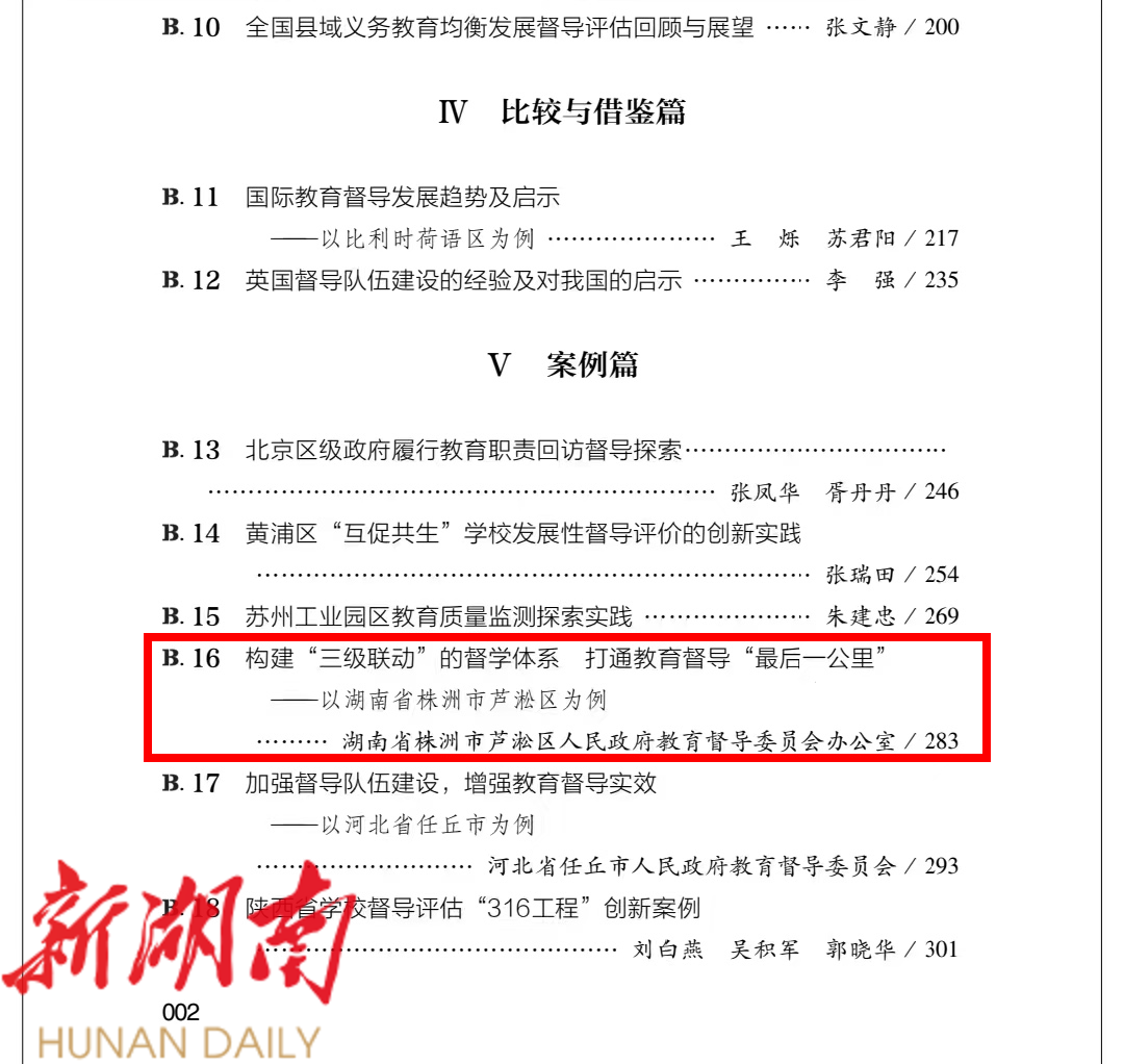 湖南仅此一例!芦淞区教育督导案例入选《中国教育督导蓝皮书》