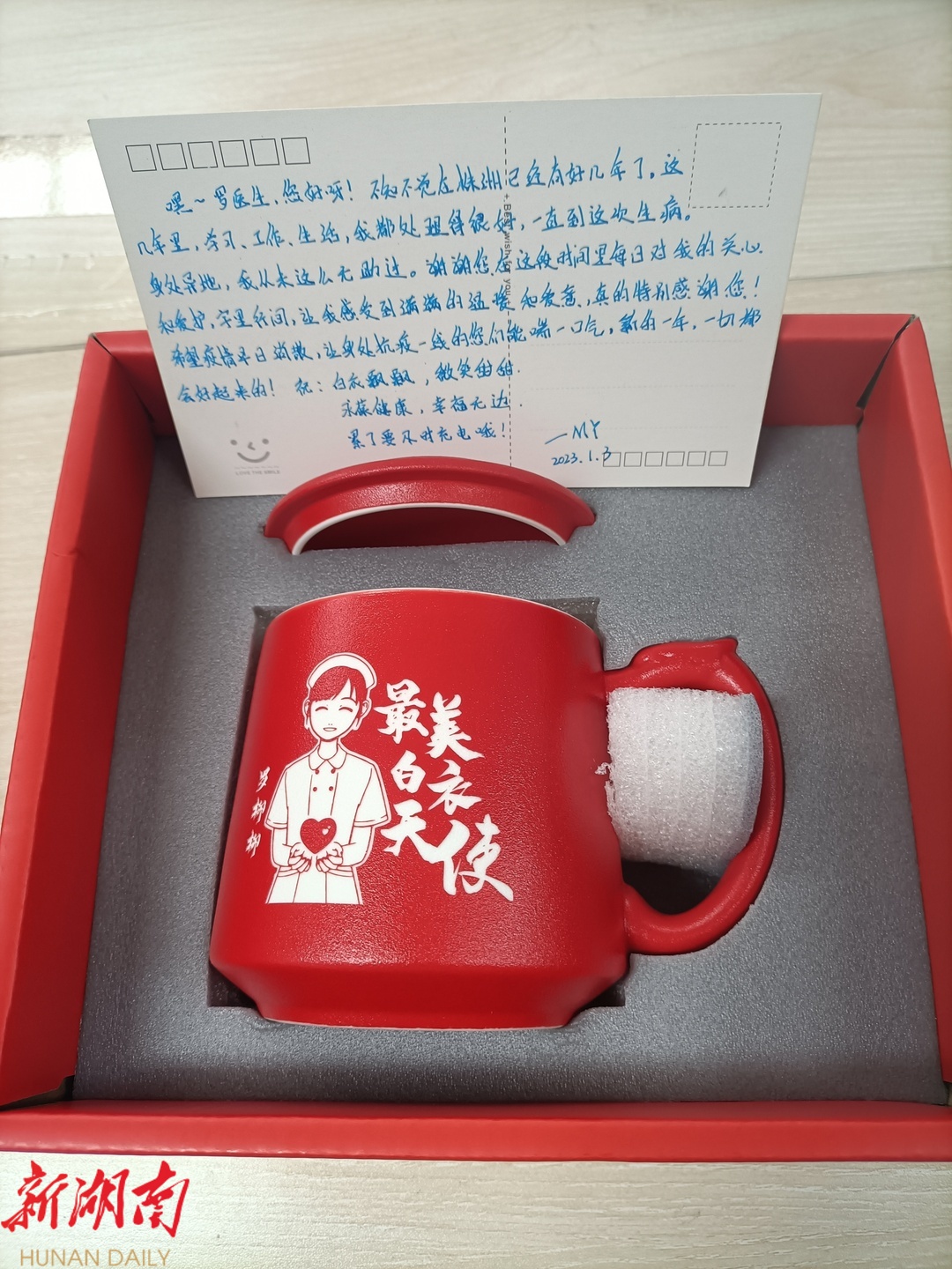 康复后的王女士特意送上锦旗,以及为罗医生特别定制的杯子,并在感谢信上写着:谢谢您在这段时间里每日对我的关心和爱护,字里行间,让我感受到满满的温暖和爱意。