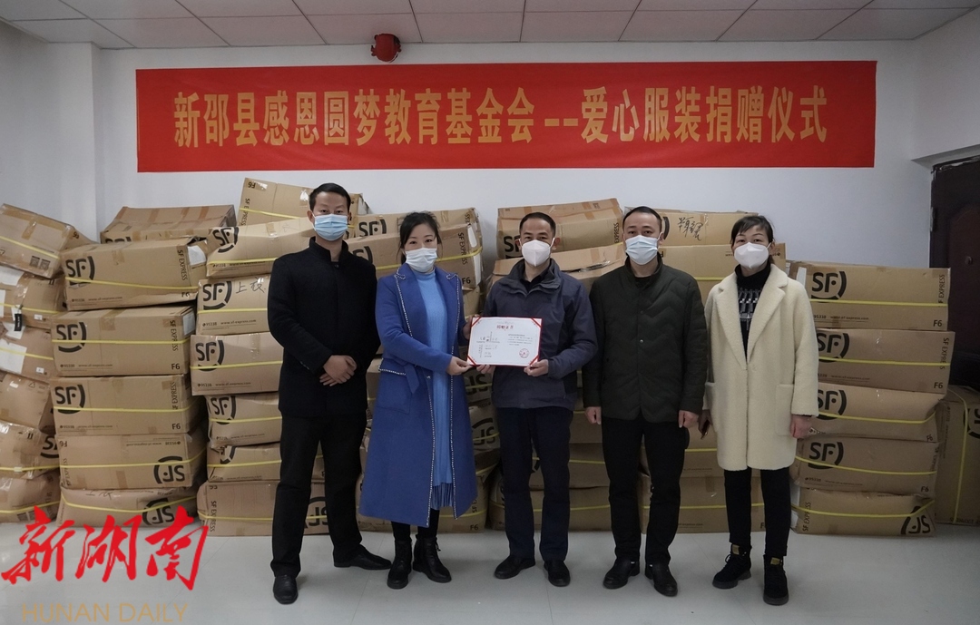 新新邵客户端1月6日讯 1月6日,新邵县感恩圆梦教育基金会——爱心服装捐赠仪式在新邵县红十字会举行。新年伊始,新邵县感恩圆梦教育基金会携手广东省哥弟服饰有限公司向新邵县红十字会捐赠了总价值120万元的哥弟品牌服装,传递温暖与爱的力量。