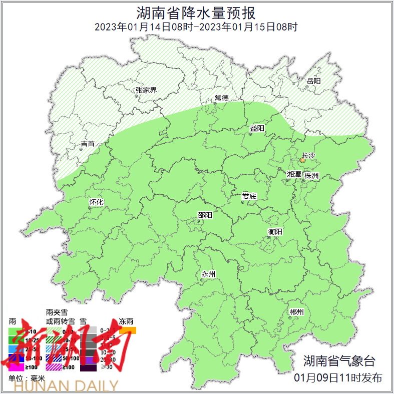 图 6 湖南降水量及相态预报(1月 14 日)