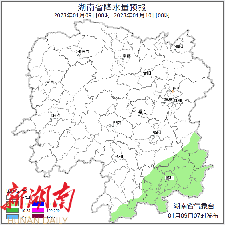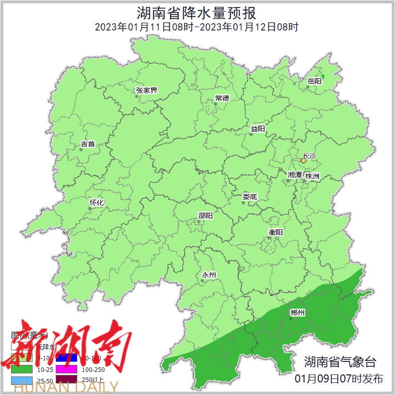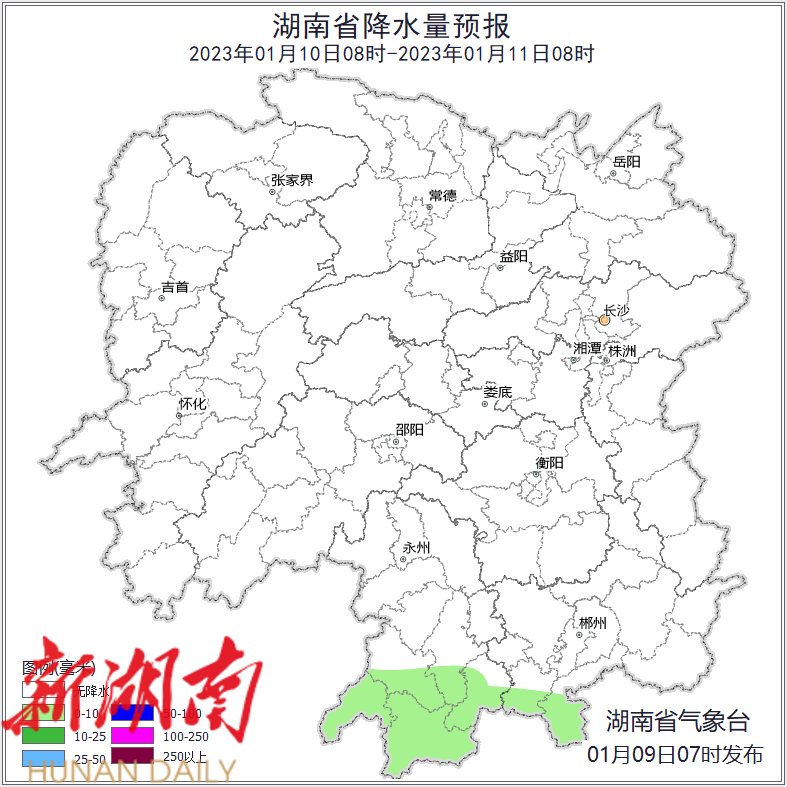 湖南降水量预报(1月9日)