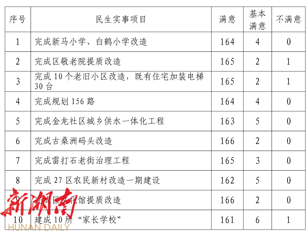 株洲市天元区第六届人民代表大会第三次会议对 2022 年度天元区人民政府 10 个民生实事项目完成情况进行了满意度测评。现将满意度测评结果公告如下: