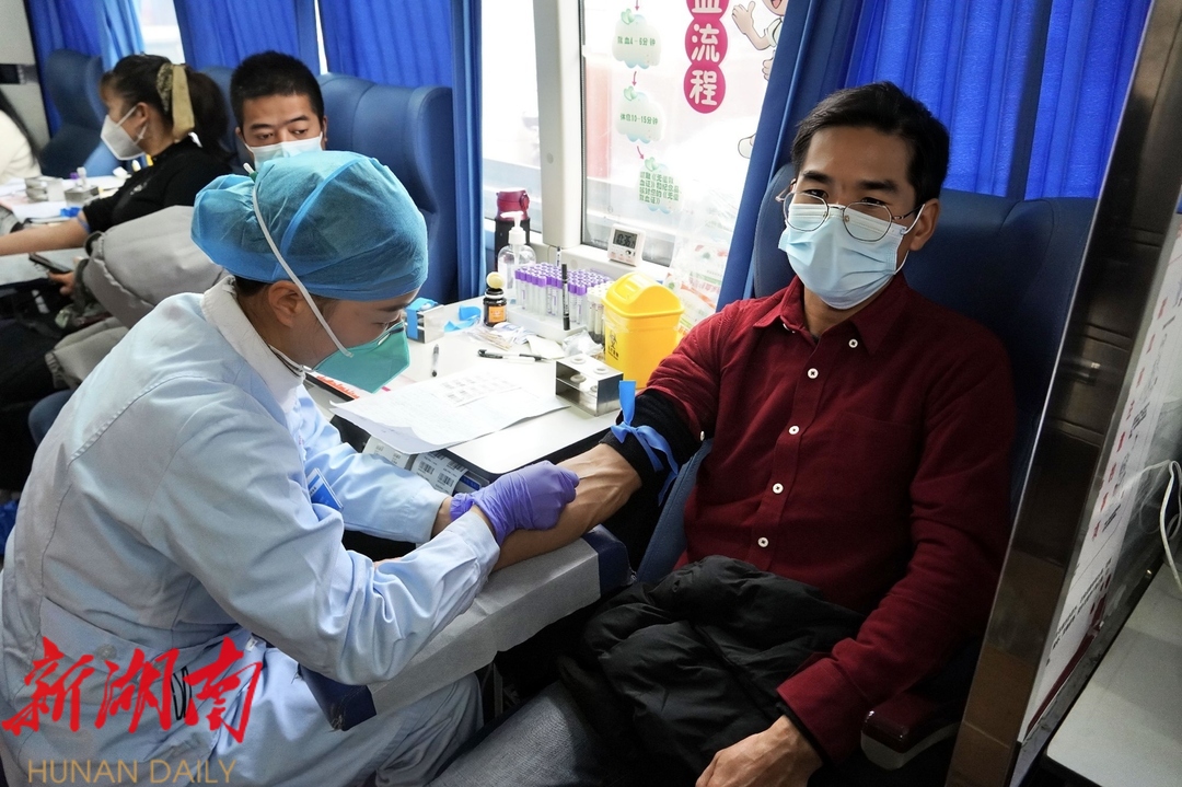 数九寒冬挡不住大家的献血热情,活动现场气氛活跃,在志愿者、医护人员的引导下,献血者依次进行扫码登记、初筛检查、挽袖献血。这里有多次献血的“老将”,也有初次献血的“新兵”,有些工作人员一大早从家里赶来排队,有的则是在工作中挤出时间来献血,之后又步履匆匆返回岗位……一幅幅温暖感人的画面定格在献血现场。
