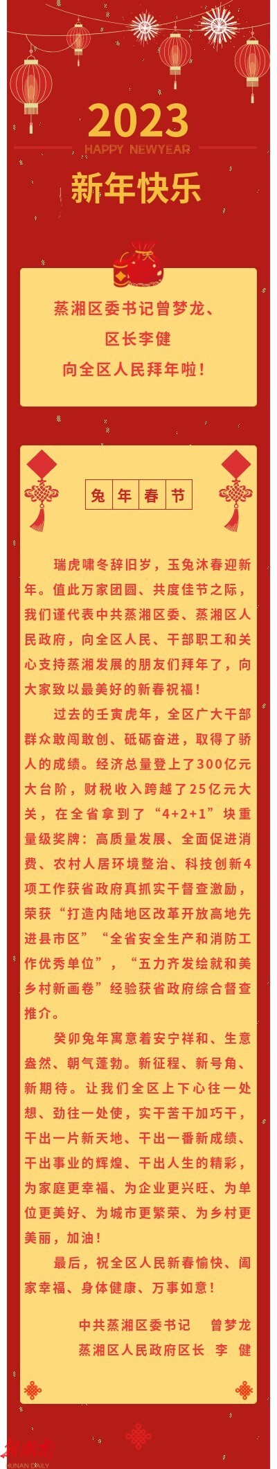 喜迎新春,蒸湘区委区政府给全区人民拜年!