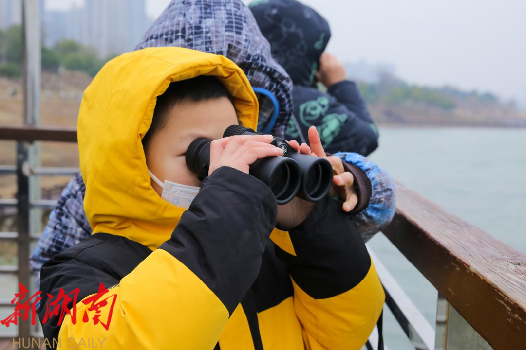 25组亲子家庭在自然学校校长吴洋老师带领下,一起投身美丽的松雅湖,老师教他们使用望远镜观察松雅湖中的常见鸟类,并了解鸟类的生活习性。