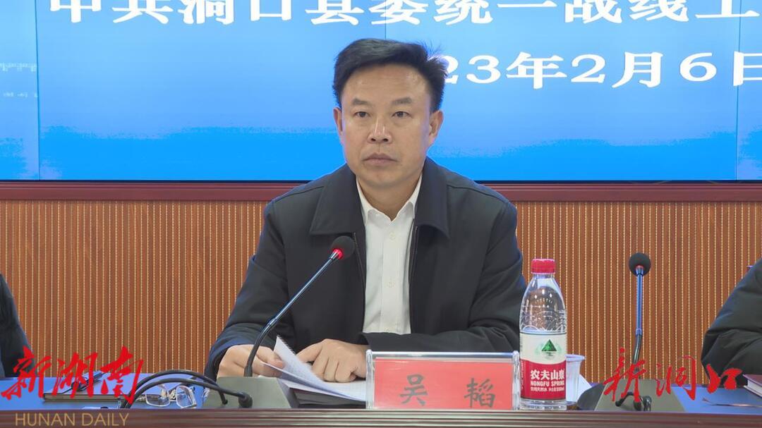 吴韬强调,要坚持党的领导,进一步加强政治引领,始终把牢正确政治方向,坚持用以习近平新时代中国特色社会主义思想凝心铸魂,持续深化政治共识教育,发展壮大爱国统一战线,坚持一致性和多样性相统一,找到最大公约数、画出最大同心圆。要坚持守正创新,进一步打造特色品牌,抓好活动载体创新,结合各部门工作实际,深入推进全国民族团结进步示范县创建和“同心美丽乡村”创建;抓好实践平台创新,把统战工作融入基层党建和社会治理体系,精心打造“党外代表人士实践锻炼基地”; 抓好制度机制创新,总结提炼党外人士、民族宗教、民营经济、港澳台侨等重点工作中形成的好方法。要坚持干在实处,进一步服务中心大局,围绕助力党委政府科学决策,组织党外代表人士聚焦贯彻落实党的二十大各项决策部署、“三高四新”战略定位和使命任务、建设现代化新邵阳、“三区一中心”建设等;围绕助力营商环境优化升级,持续抓好促进民营经济发展“六个一”工作,深化开展“洞口县企业家日”“万名干部联万企”; 围绕助力乡村实现全面振兴,抓实“万企兴万村”行动、“迎老乡、回故乡、建家乡”活动;围绕助力大众创业万众创新,以创建“五好”园区为契机,发挥党外人士实践锻炼基地作用。要坚持底线思维,进一步维护安全稳定,牢固树立总体国家安全观,增强忧患意识,坚持底线思维;强化领导责任和工作责任,建立协调联动机制;统筹网上网下,运用互联网思维开展工作,防止引发“黑天鹅”“灰犀牛”事件。要坚持自身建设,进一步巩固统战基础,强化督导考核,落实项目化推进、清单化管理、常态化督导;强化队伍建设,严格落实党外干部培养使用十年规划;强化基层基础,全面落实完善统战部门联系指导乡镇(街道、管理区)、经开区统战工作制度,确保基层统战工作有人抓、有人管、不出事。