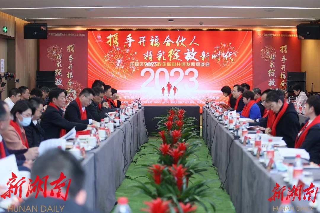 湖南日报·新湖南客户端2月6日讯(记者 张颐佳)新年奋发从新春开始。2月5日是元宵佳节,马栏山视频文创园里一席特殊的“家宴”欢声笑语其乐融融,长沙市开福区2023年政企联心共话发展恳谈会在此举行。开福区、马栏山视频文创园和金霞经开区党政负责人与区域46家重点企业代表济济一堂,共商共话新年发展。长沙市政协主席、党组书记陈刚,长沙市领导曹再兴、肖正波、陈剑文等出席。