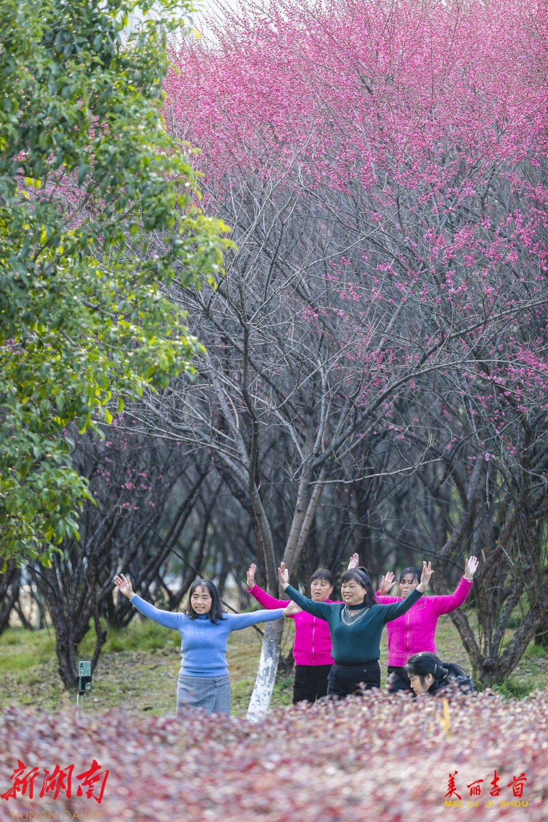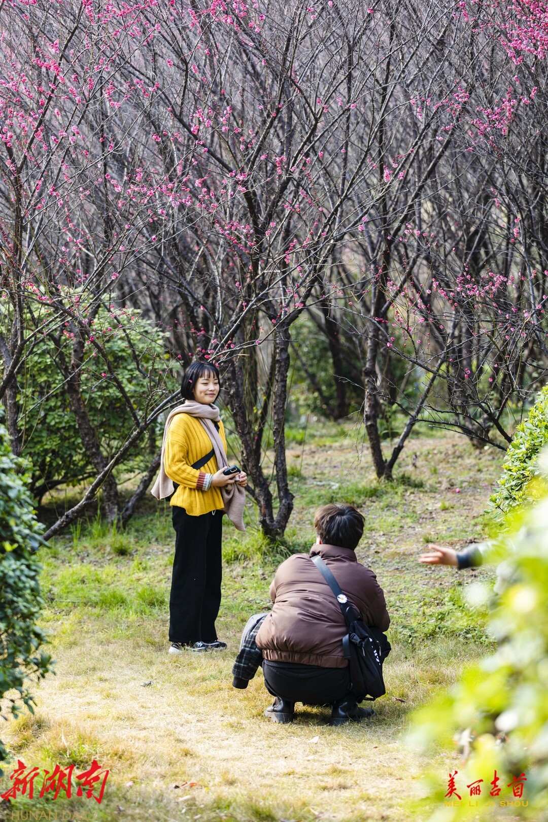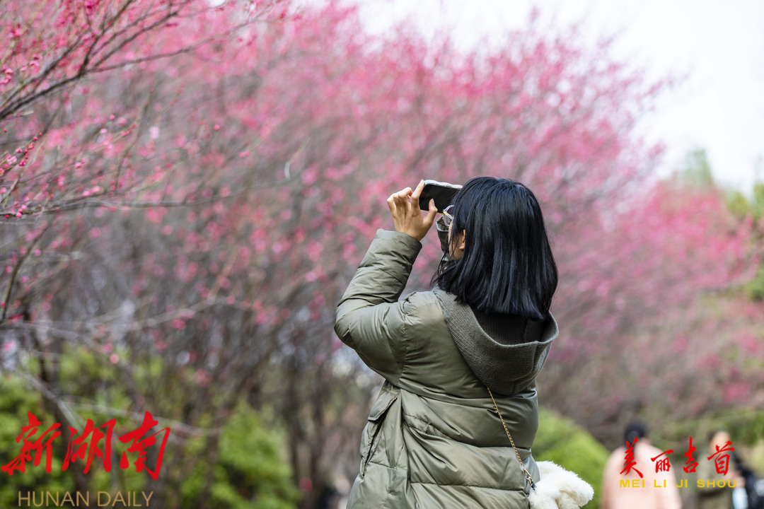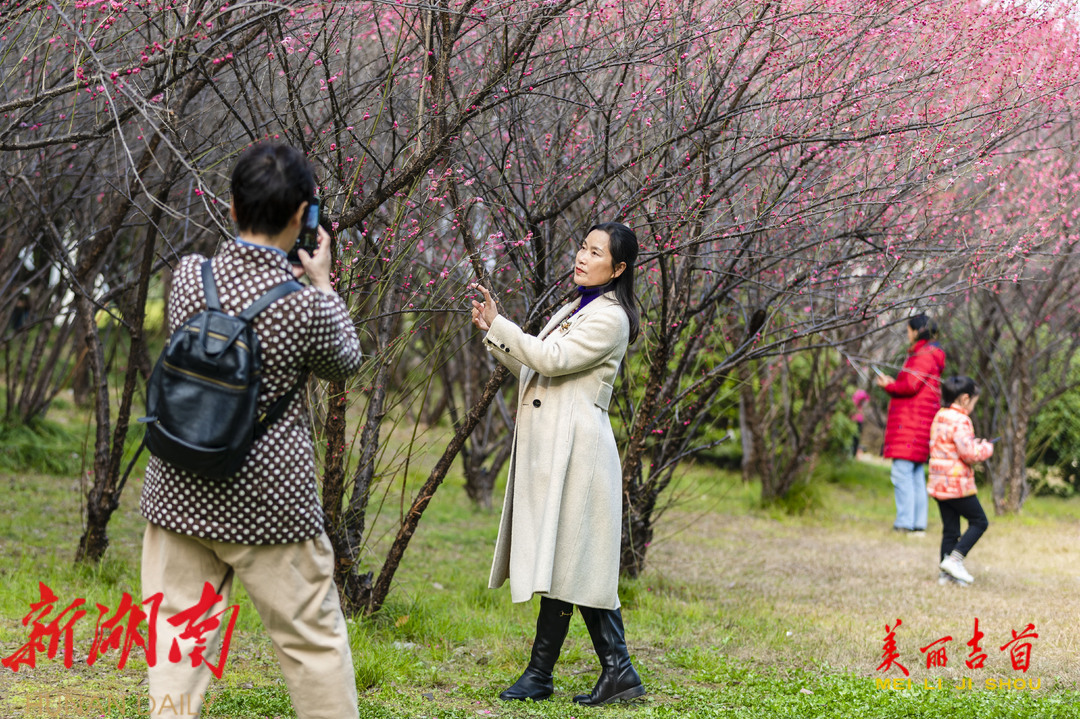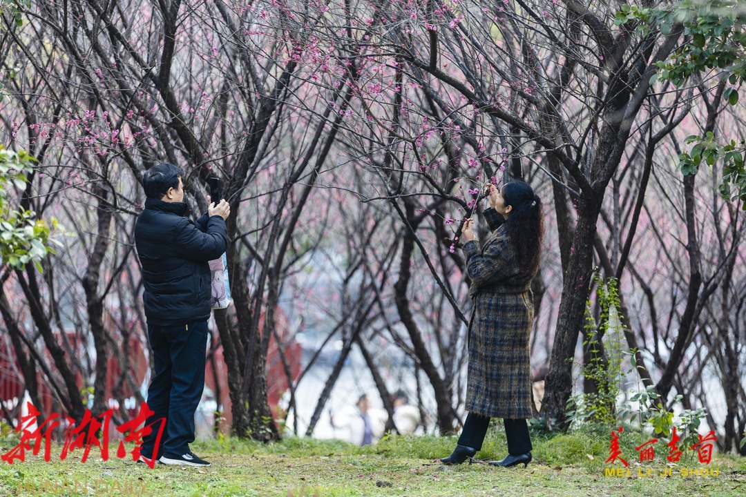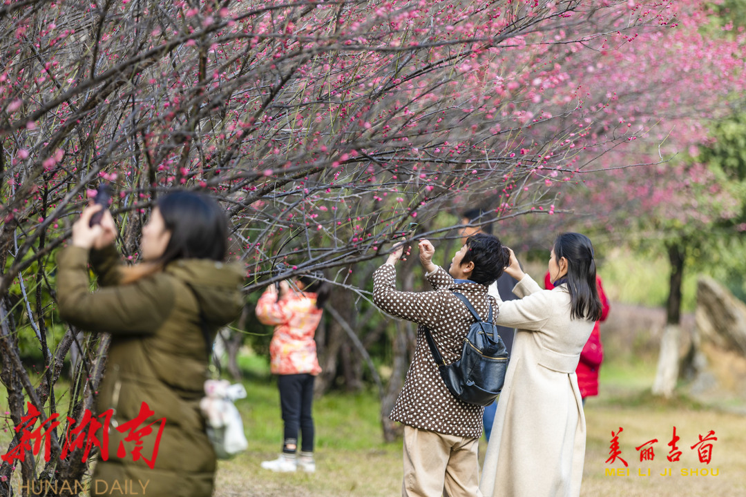 2月6日,吉首市人民广场附近的梅花竞相绽放,暗香扑鼻,一派春意盎然的景象,吸引了不少市民前来游玩赏花。