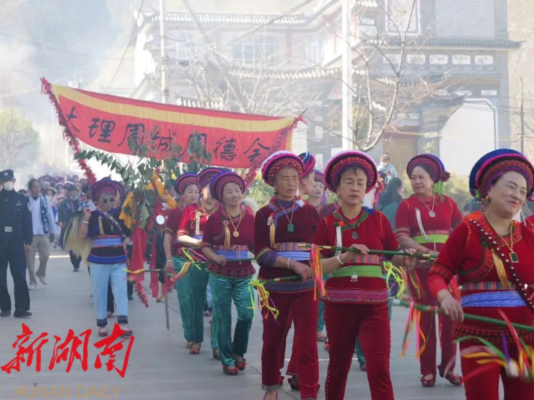 云南大理,是中国白族主要聚居地。湖南桑植,是白族第二大聚居区。两地虽隔着崇山峻岭,但早在2012年,桑植的合群村与大理的周城村就结为“姊妹村”,从这一年开始,两地就频繁地“走亲戚”,这次本主节也是邀请了桑植的“家人们”参加。