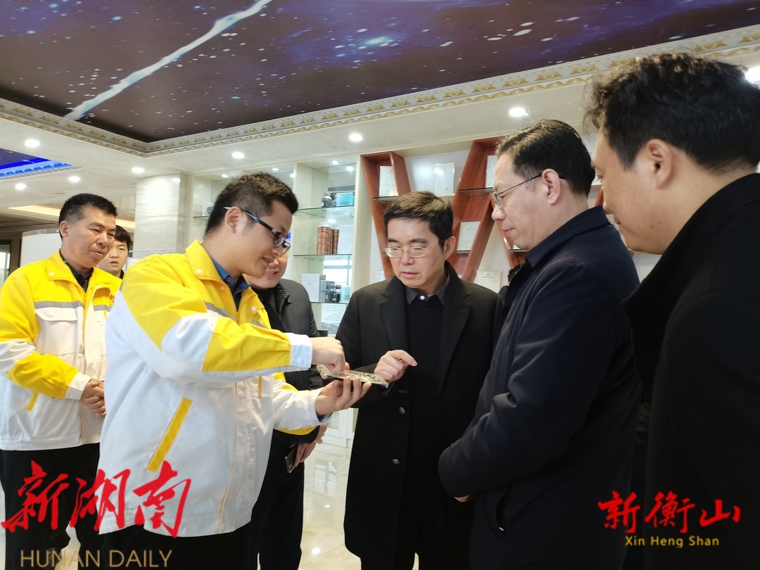 衡山县融媒体中心2月9日讯【记者:胡程远 唐有权】 2月9日,省纪委监委驻省工信厅纪检监察组组长、省工信厅党组成员石峰岗率省工业经济大走访大调研组来我县,专题调研春节后工业企业复工复产进展情况。县委副书记、政法委书记陆志宏,县领导颜海峰、袁晓斌、唐自立陪同。