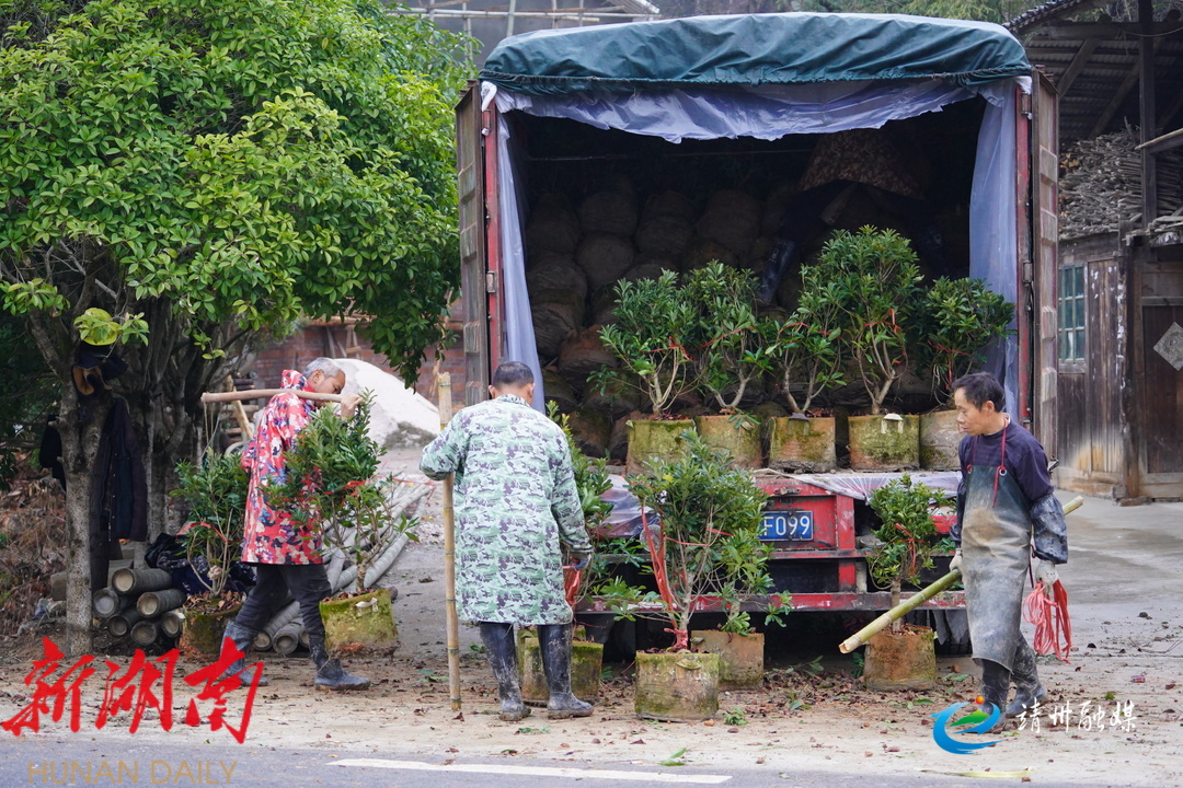 工人正在将杨梅苗挑到路边装车。易子明 摄